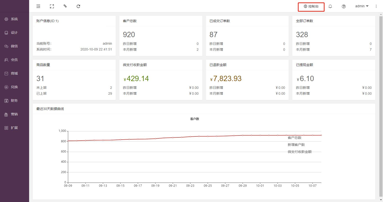 平台账号登录后,点击右上角【控制台】进入系统控制台