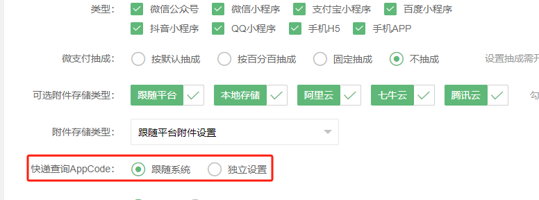 2、选择独立设置,需要在子账号--系统--系统设置--快递查询AppCode处配置