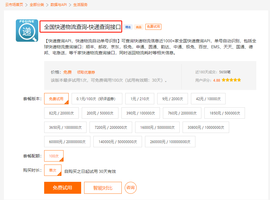 快递查询接口请务必购买”全国快递物流查询“,如下图