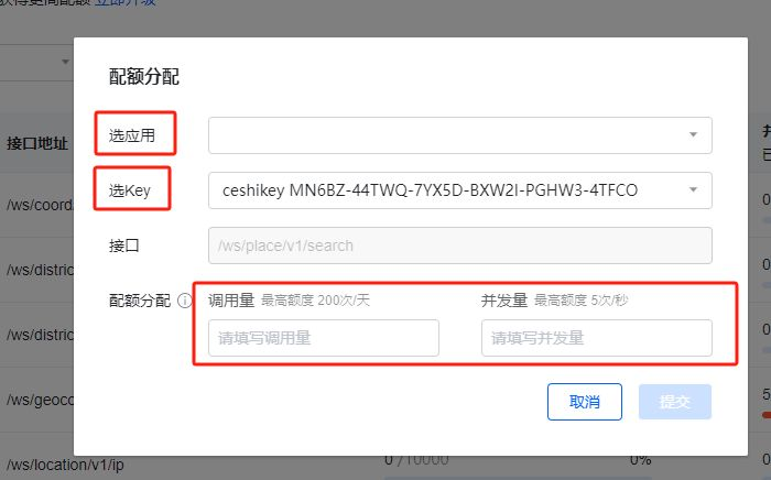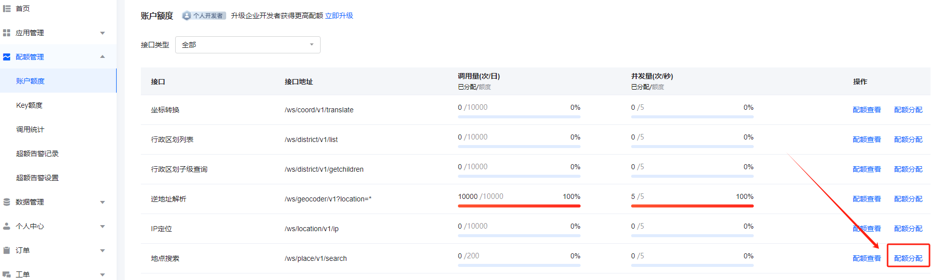腾讯地图配额管理【腾讯地图控制台-配额管理-账户额度-配额分配】(逆地址解析,地址解析,骑行(电动车)路线规划,关键词输入提示,地点搜索)
