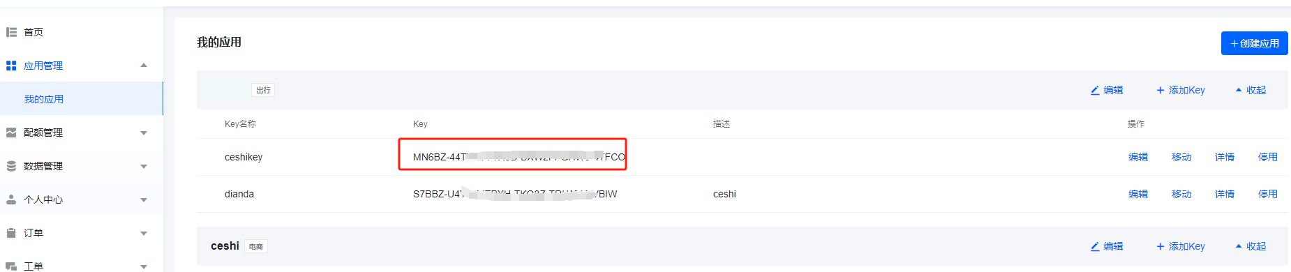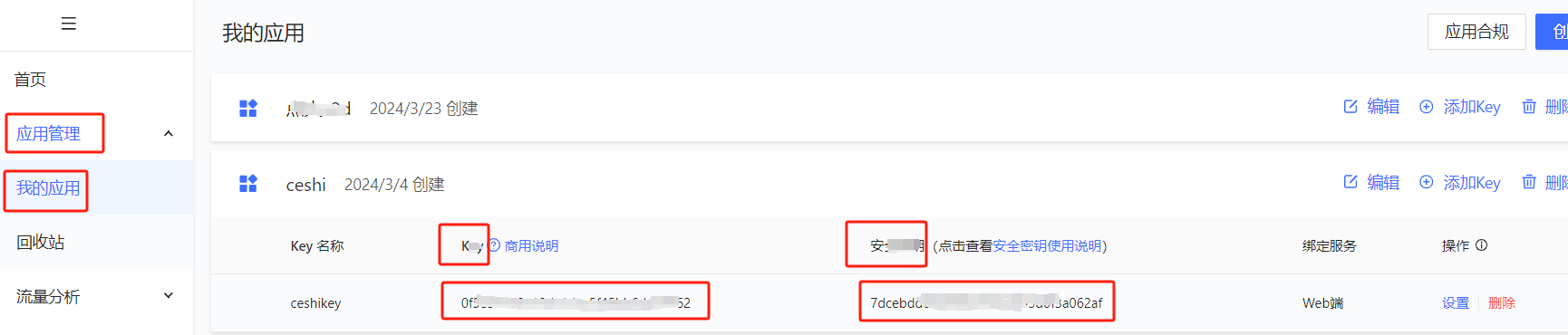 提交后在应用管理--我的应用--添加的相关应用里复制key到瑞速后台高德地图key处并保存