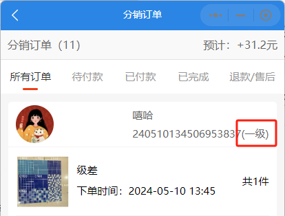 一级、二级、三级修改后在我的团队、分销订单生效