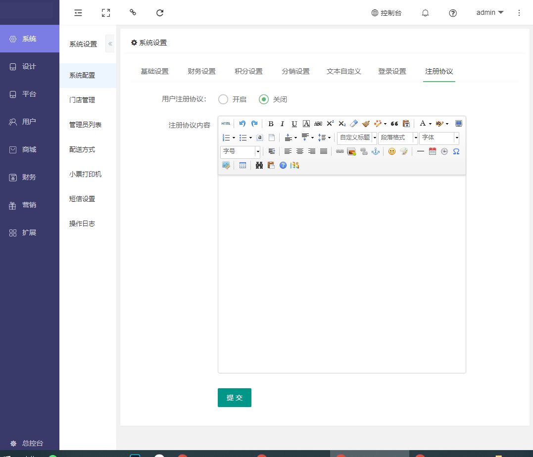 平台财务的相关配置