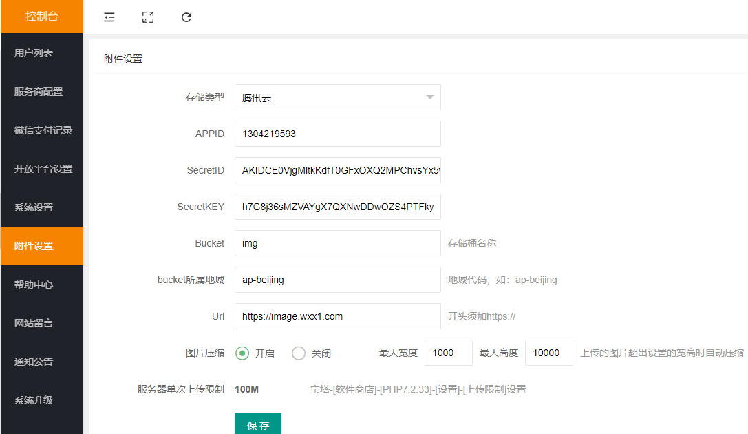 平台附件设置:控制台--附件设置