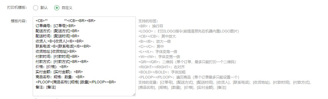 可以设置自动打印订单、配送订单是否打印、自提订单、买单付款、收银台收款是否打印