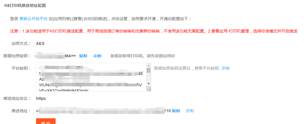 添加易联云打印机---配置易联云K8打印机信息---设置K8打印机推送地址配置