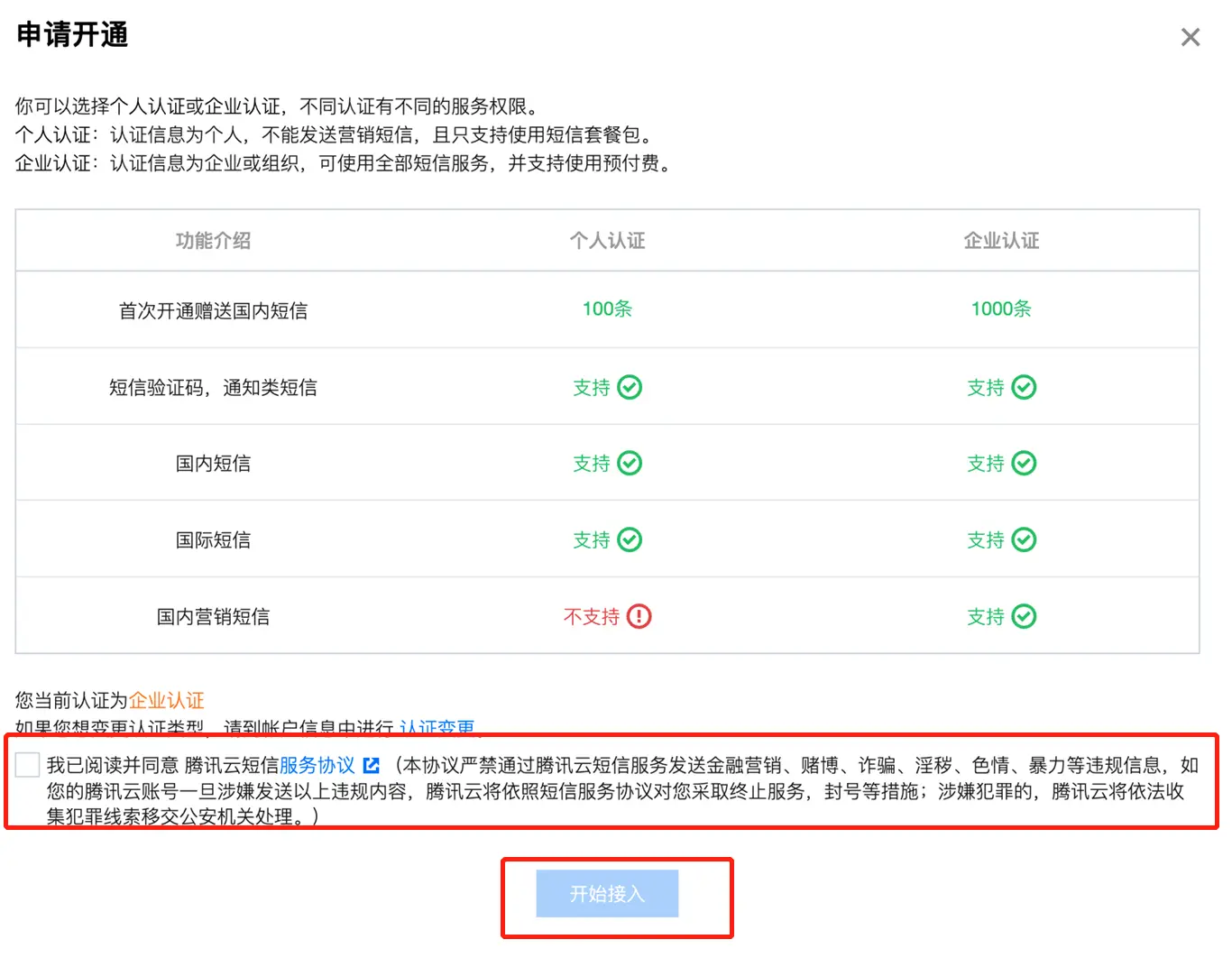 1、点击前往“腾讯云短信服务平台”,进入以后先申请账号,如果之前申请过,直接登录,登录以后点击页面中的免费领取短信(个人认证:100条免费短信;企业认证:1000条免费短信)