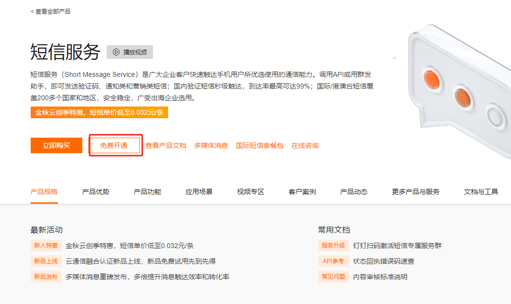 1、点击前往“阿里云短信服务平台”,进入以后先申请账号(完成实名认证),如果之前申请过,直接登录,登录以后搜索短信---点击开通