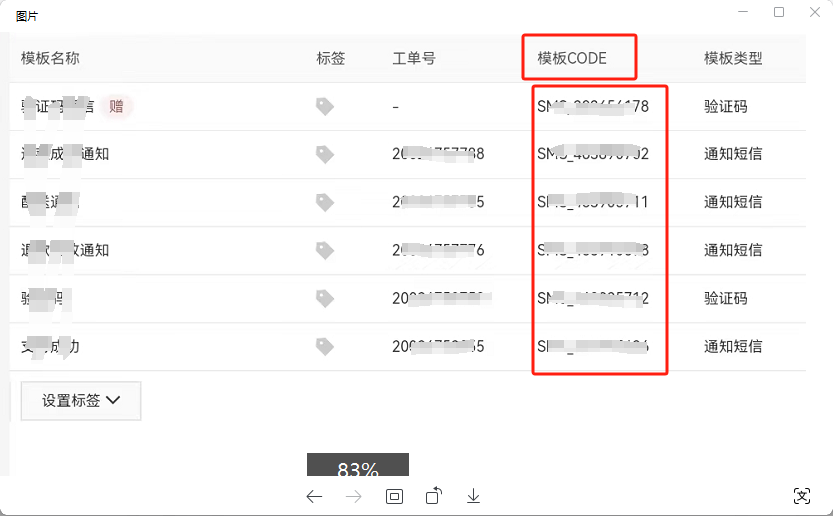 注意:短信模板设置里填写的是模板CODE,不是模板内容示例或工单号,短信模板按照后台的模板内容示例申请
