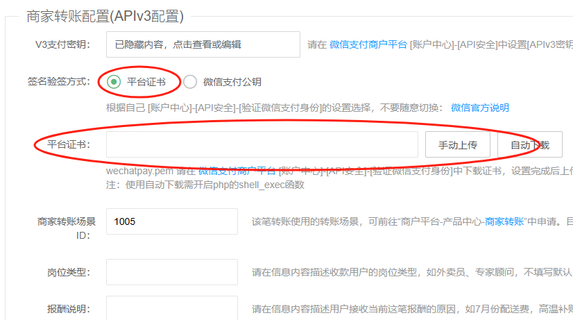 商家转账配置(APIv3配置)