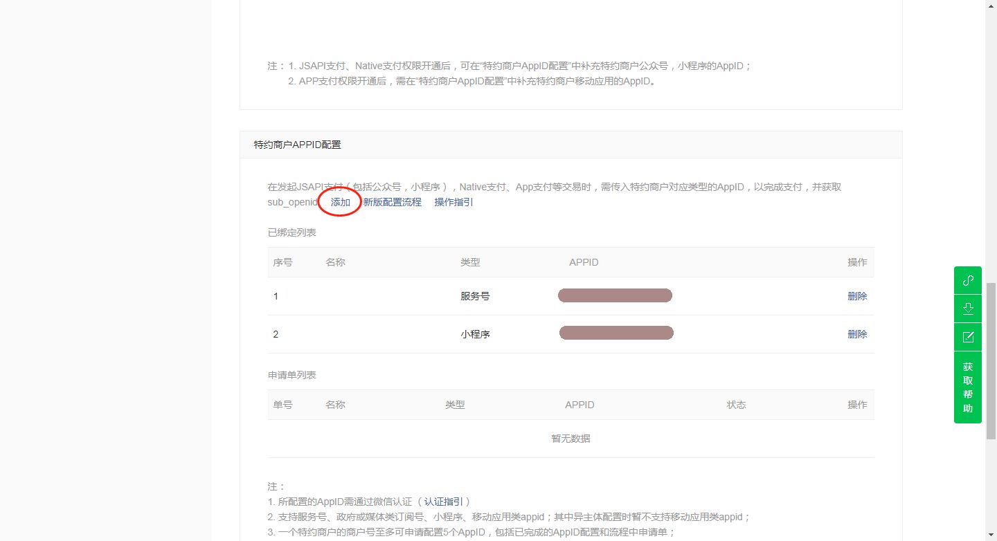 PEM证书:微信支付商户平台-[账户中心]-[API安全]中设置[API证书],设置完成后上传