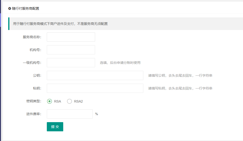 第一步:需要先在控制台---服务商配置里配置随行付信息