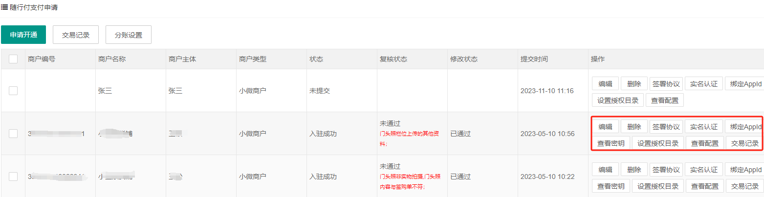 申请通过后需要在随行付申请记录里进行签署协议、实名认证、绑定appid、设置授权目录、查看配置等操作