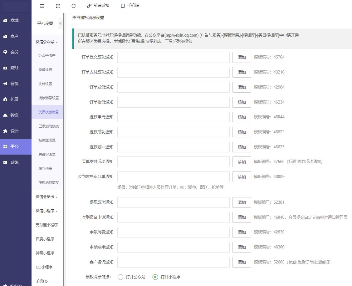 类目模板消息