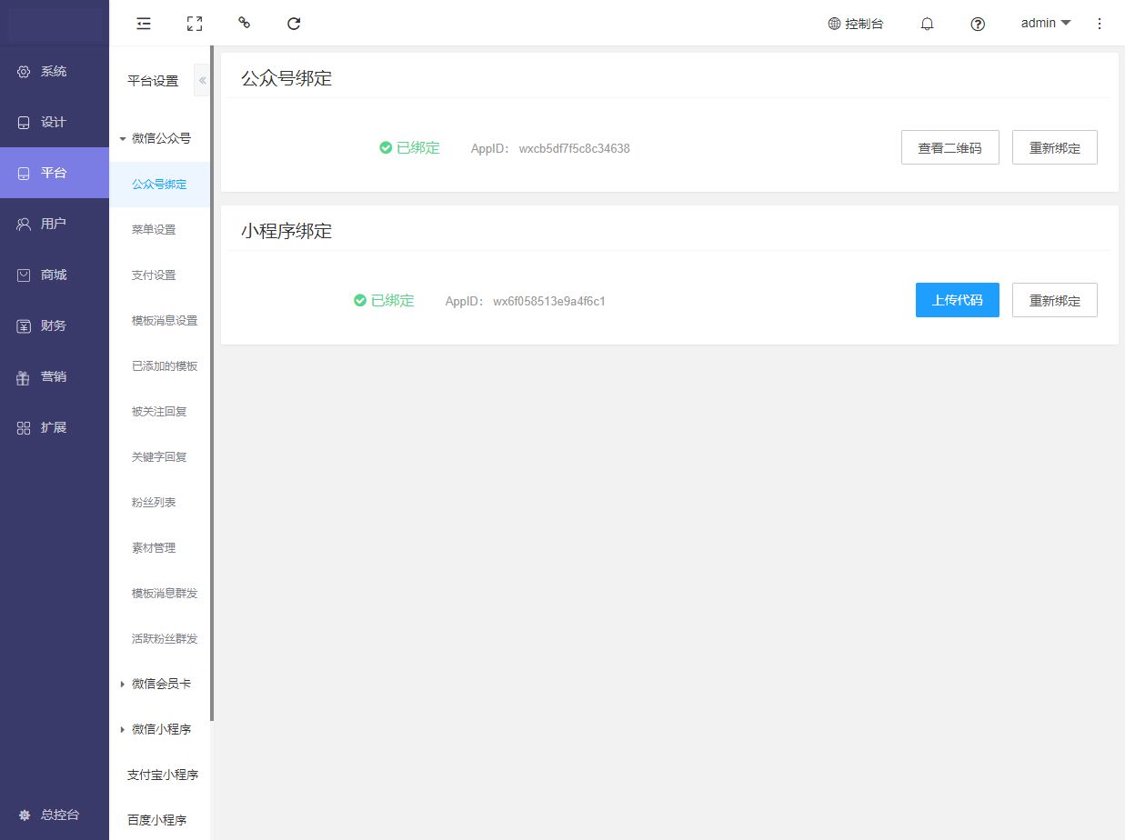 如果未配置开放平台,可以直接在后台---平台---微信小程序里点击上传代码---小程序管理员扫码上传