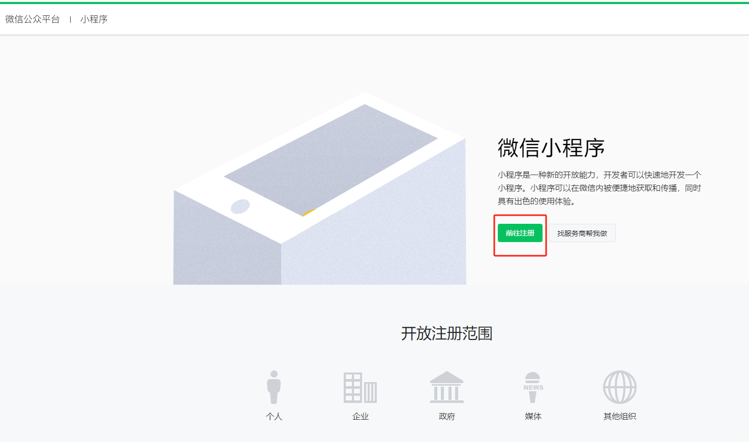 方式一:如果没有注册小程序账号,可以使用平台的快速注册认证的小程序功能,该功能依赖微信开放平台,只有配置了微信开放平台才能使用