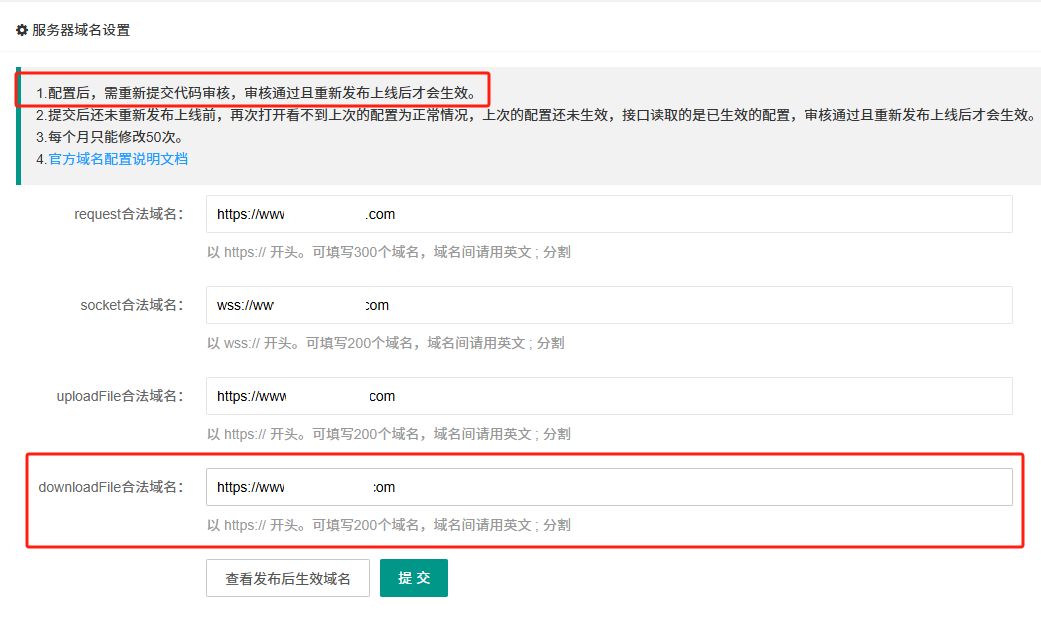 扫码授权绑定小程序出现图片下载失败或图片保存失败,点击服务器域名,检查downloadFile合法域名。若使用了云存储,云存储的域名也要加进去。