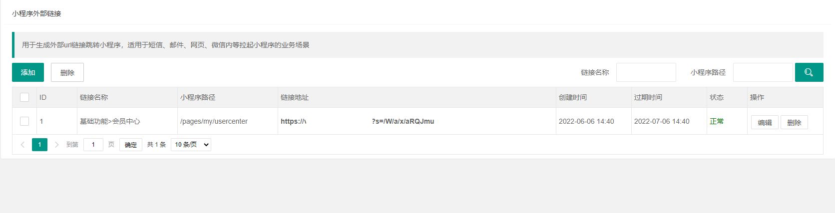 外部链接:用于生成外部url链接跳转小程序,适用于短信、邮件、网页、微信内等拉起小程序的业务场景