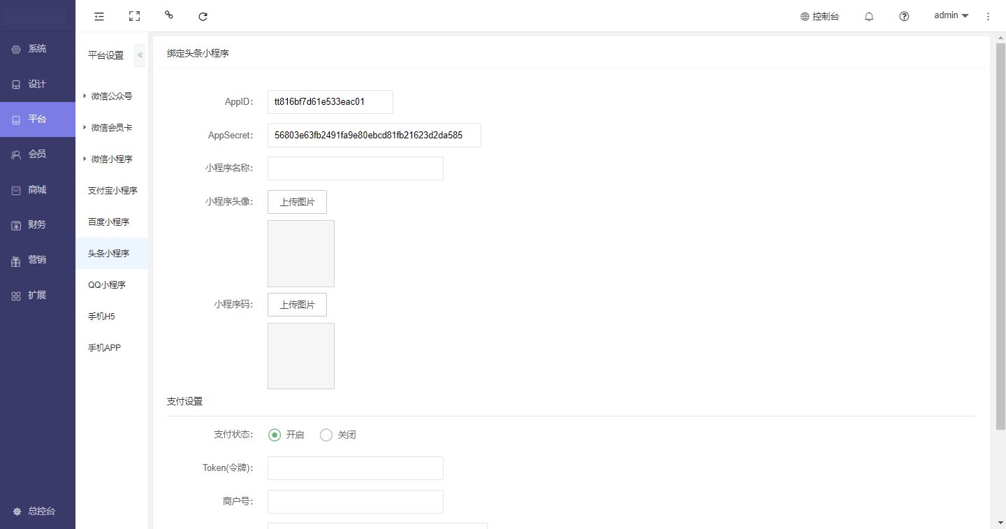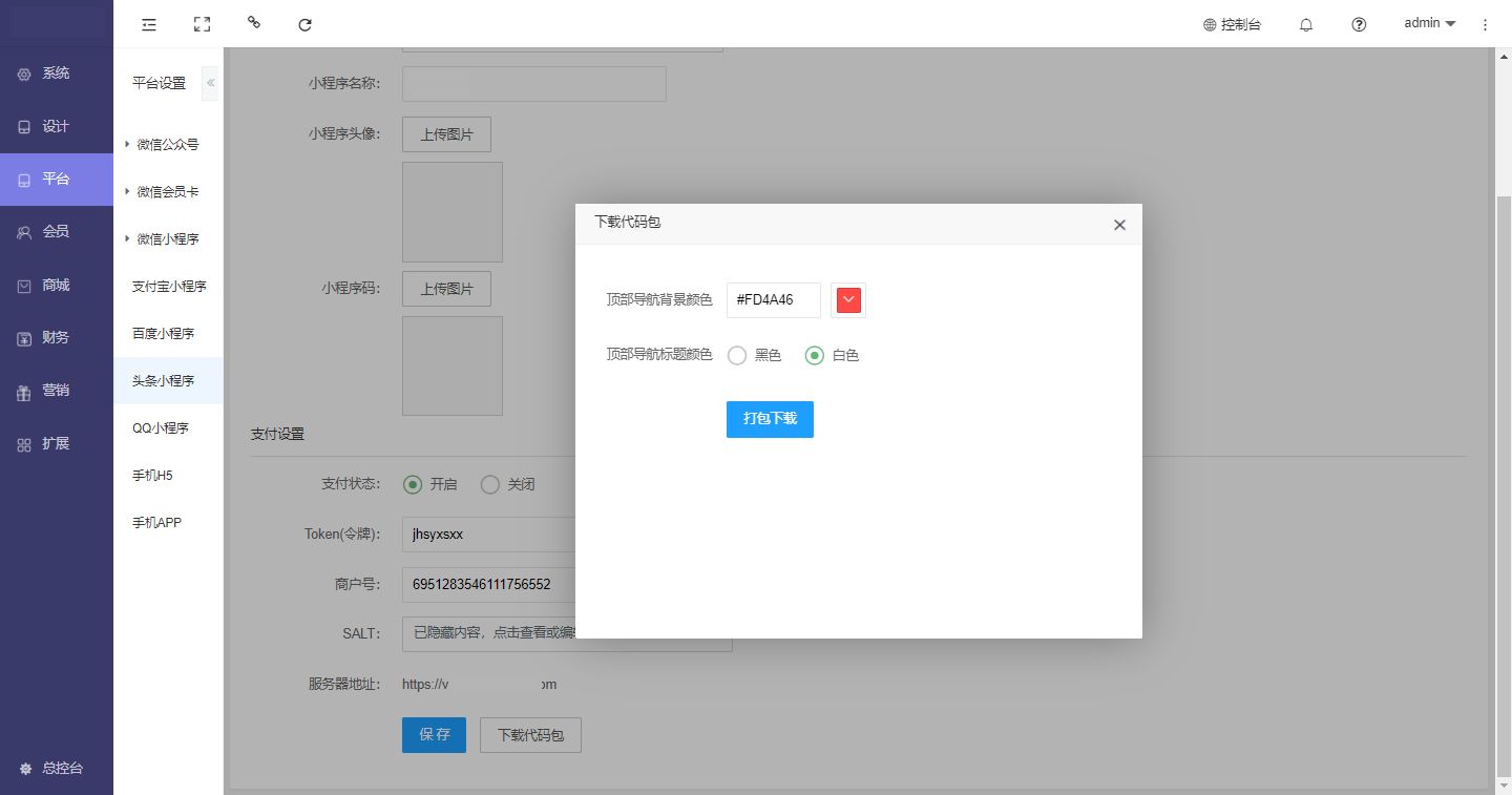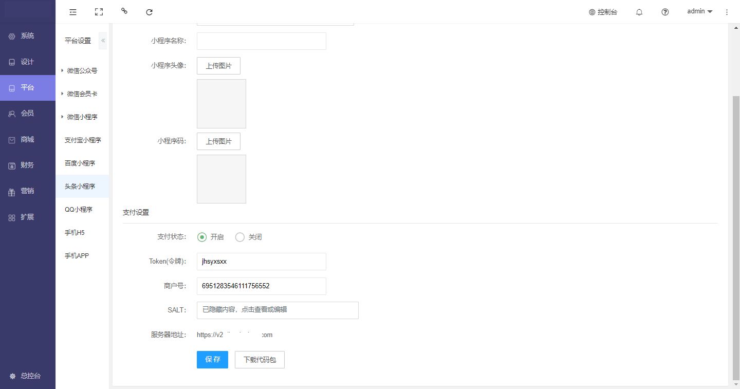 将支付信息对应填写到商城后台并保存