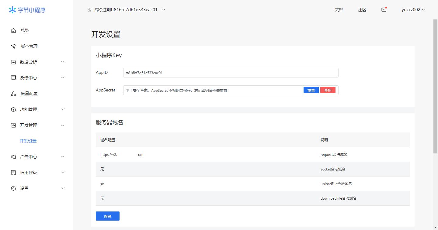 然后下载小程序代码包,使用字节跳动小程序开发者工具上传代码,提交审核