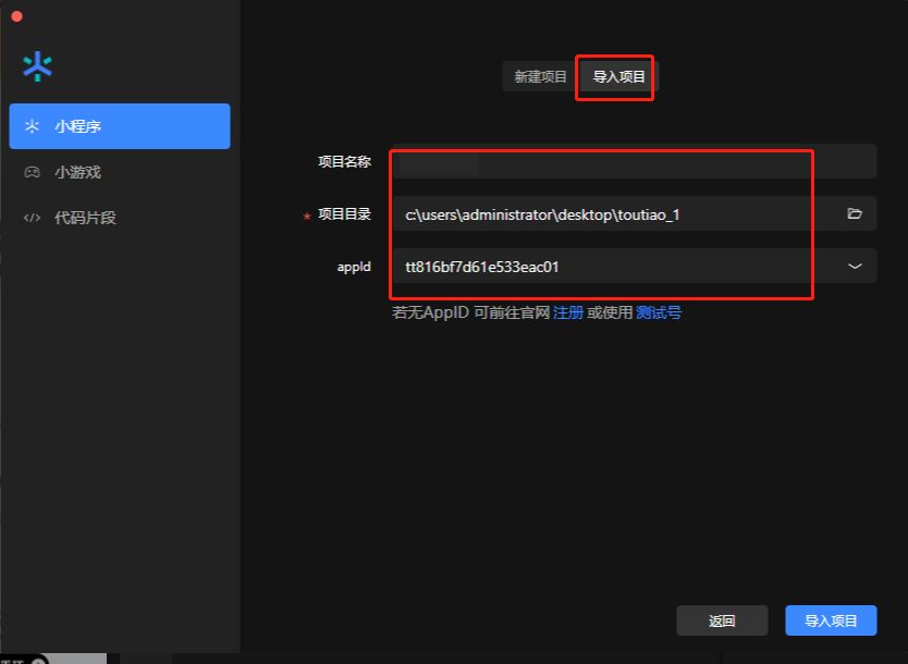 开发者工具导入流程