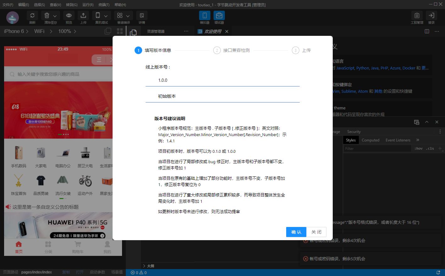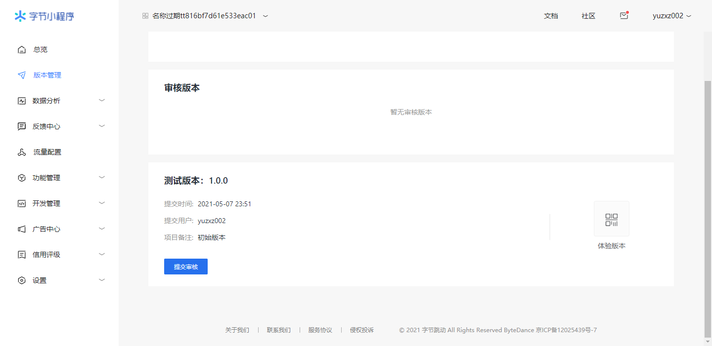 上传完成后 在字节跳动小程序开发者平台版本管理中进行预览提交审核等操作