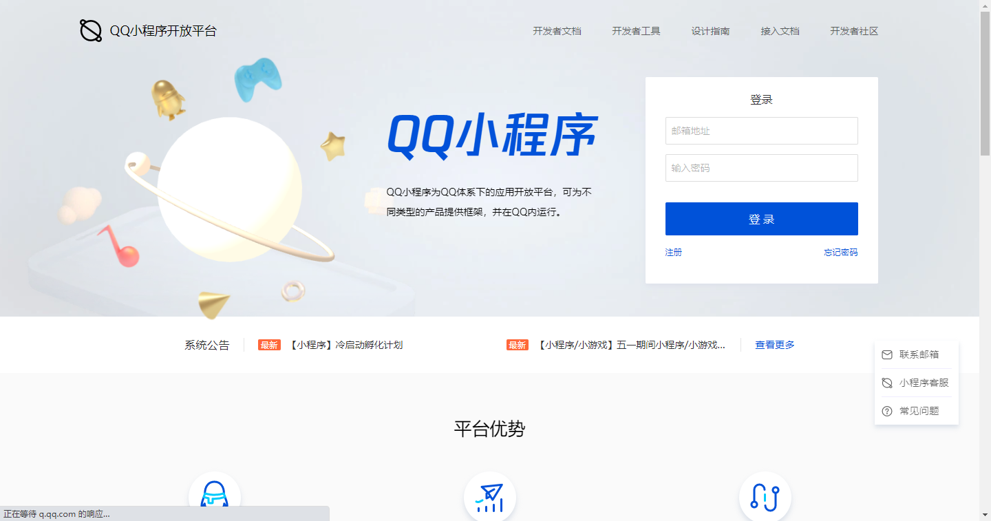 首先登录QQ小程序开发者平台创建小程序 https://q.qq.com/