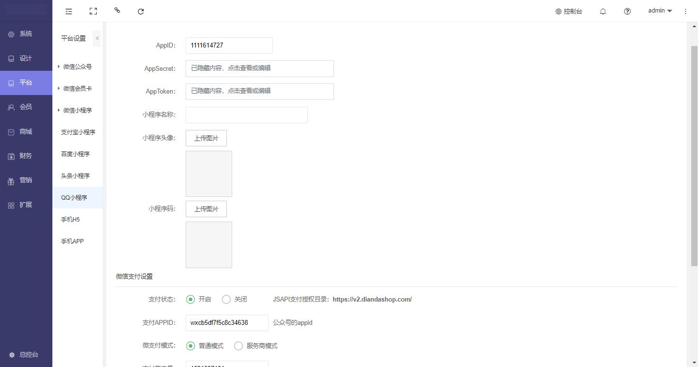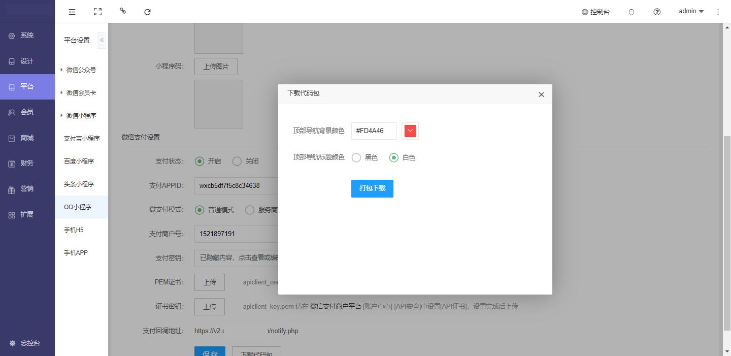 将支付信息对应填写到商城后台并保存