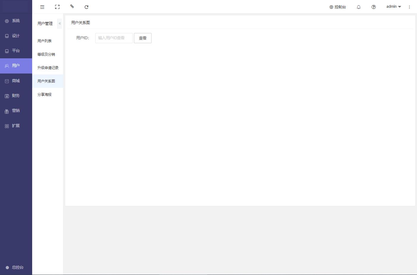 用于查看会员的用户关系图,输入用户ID查询