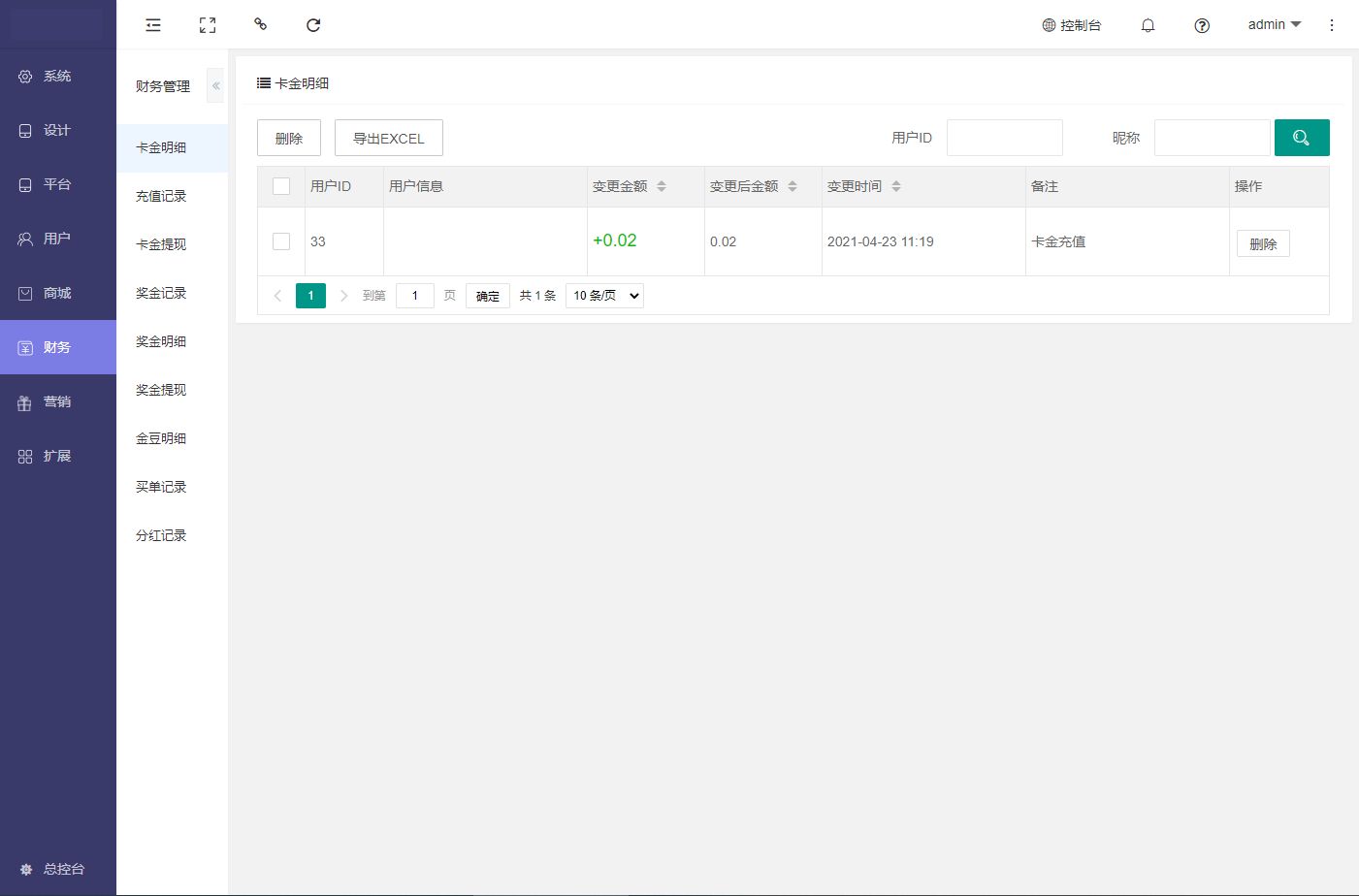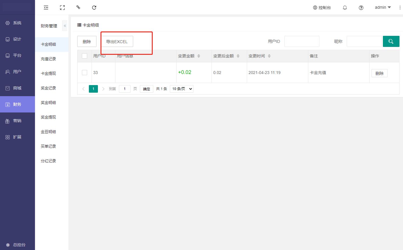 用于会员余额明细查看,导出数据表格,筛选数据