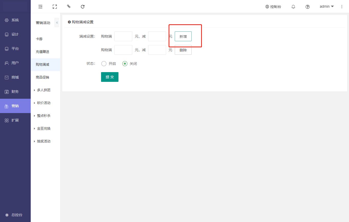 用于购物满减设置