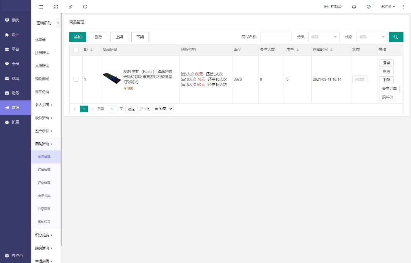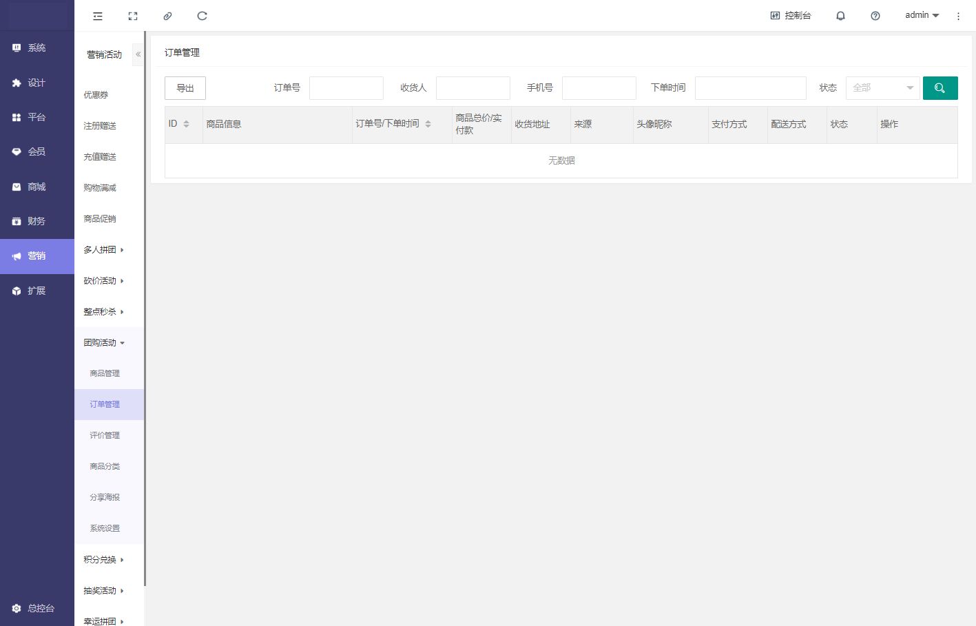 团购订单管理,导出订单、批量发货、删除订单、查看订单详情