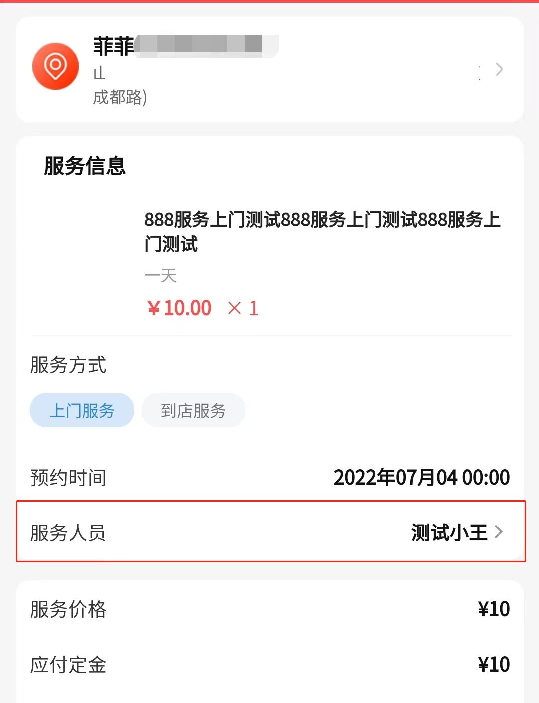 3.2用户选择,添加预约商品时选择服务人员,用户下单时自己选择某个服务人员