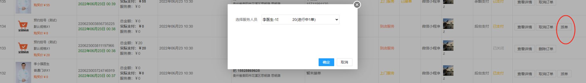 3.1.2 后台派单,派单模式设置为指定服务人员,用户下单后,由后台管理员派单给指定服务人员进行服务