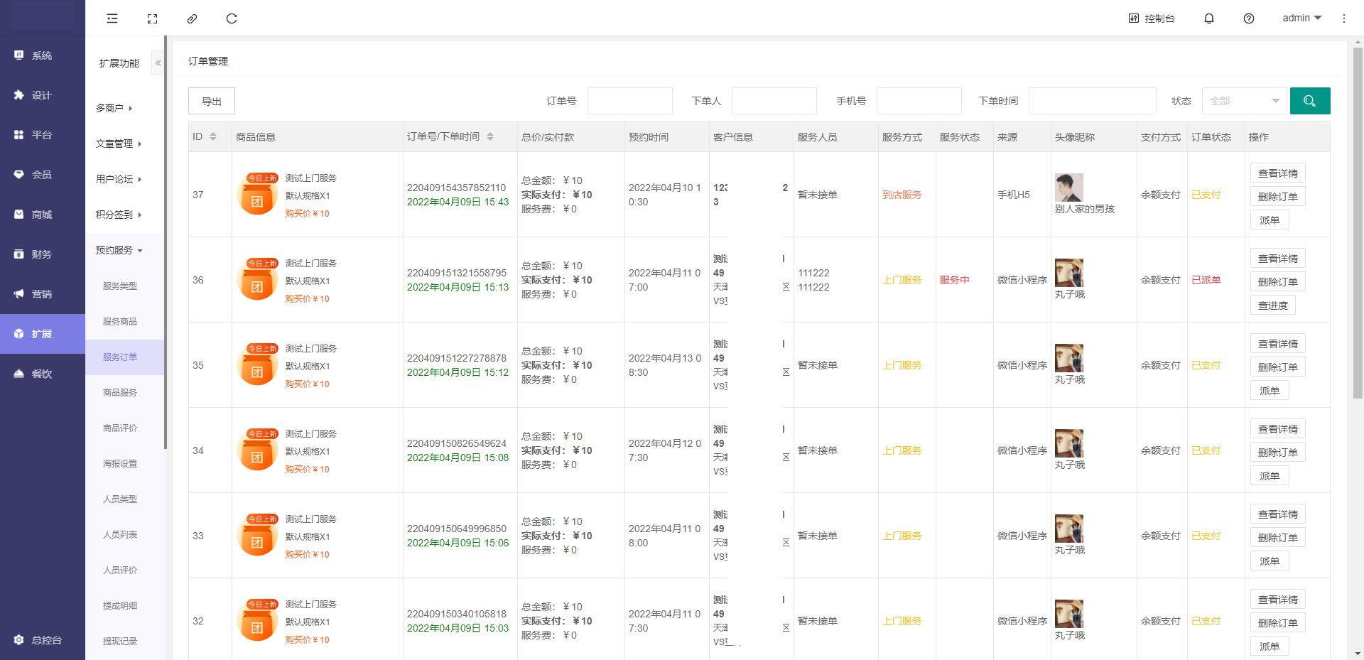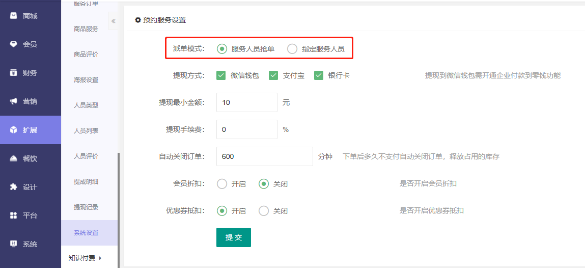 3.1后台派单,后台派单和预约服务-系统设置里的派单模式(服务人员抢单;指定服务人员)结合使用