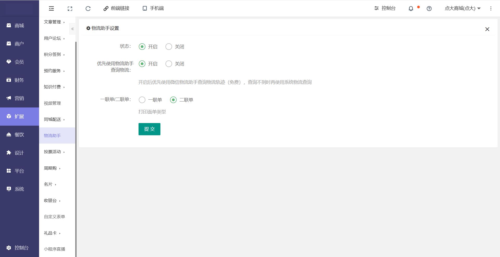 (2)使用物流公司接口或收件员上门打印电子面单;