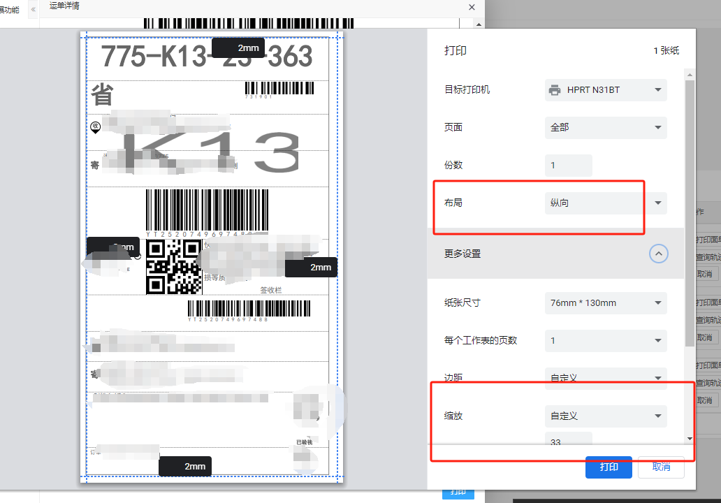 (3)点击下方列表中对应订单的[打印面单]使用热敏打印机打印