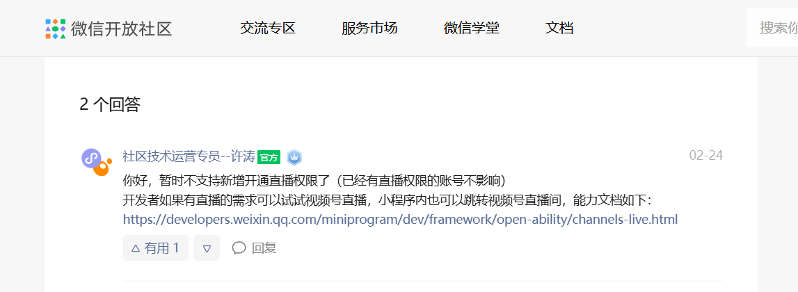 注意:新注册小程序已不支持新增开通直播权限,有直播的需求的可以尝试视频号直播