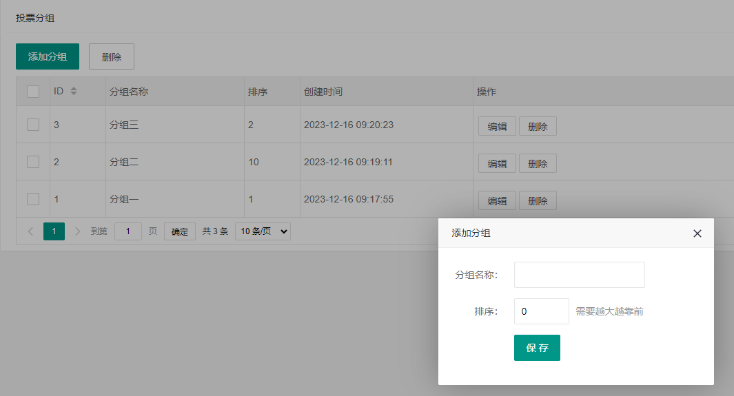 添加投票分组,用于创建投票活动时选择分组