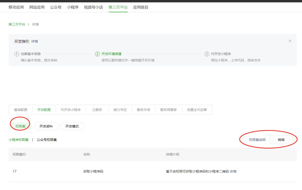 授权绑定的小程序,开放平台权限集需要授权142,权限集修改后需要重新扫码授权绑定小程序(微信小程序后台-设置-第三方设置-第三方平台授权管理-解除授权;瑞速后台扫码授权绑定小程序)。