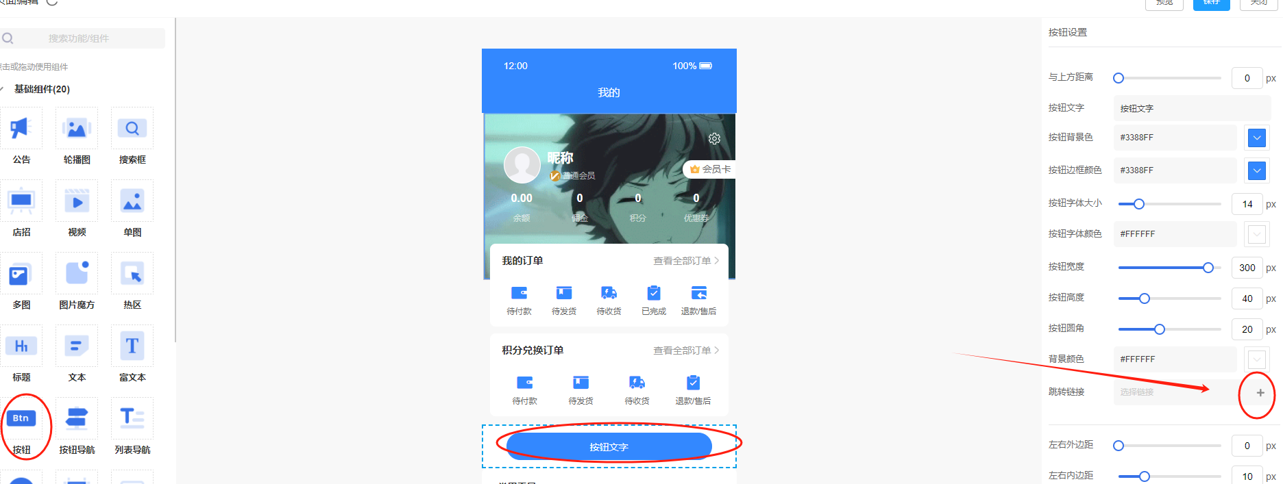 第三步:前端登录已绑定为管理员的会员账号,点击添加的“按钮”组件后可以直接登录管理员端