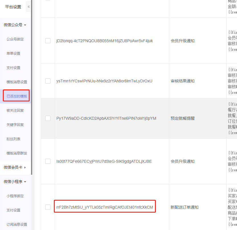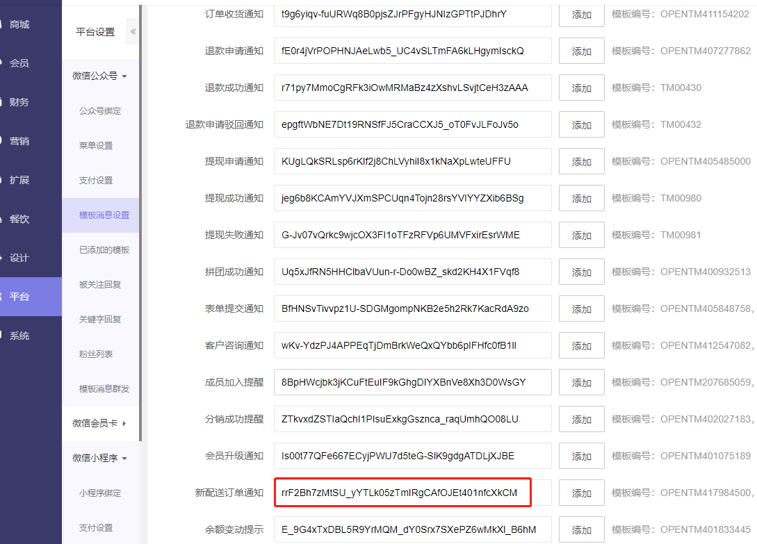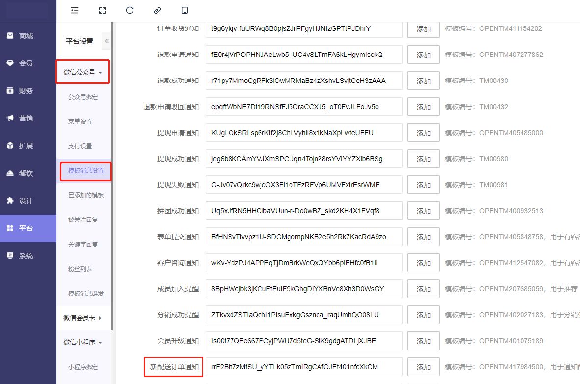 3、已添加的模板库里是不是有新订单派送通知