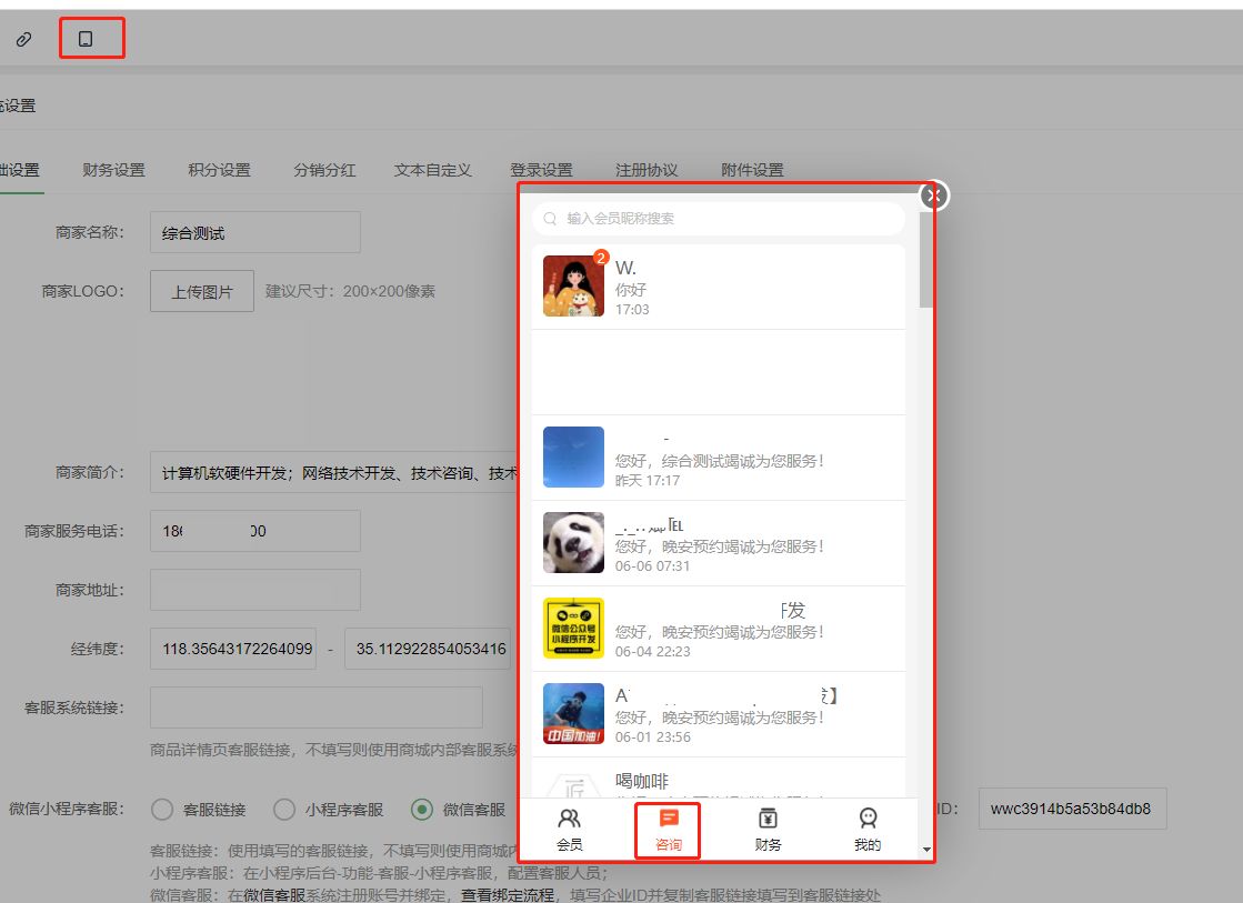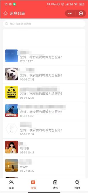第三步:登录管理员手机端,可以查看用户咨询信息