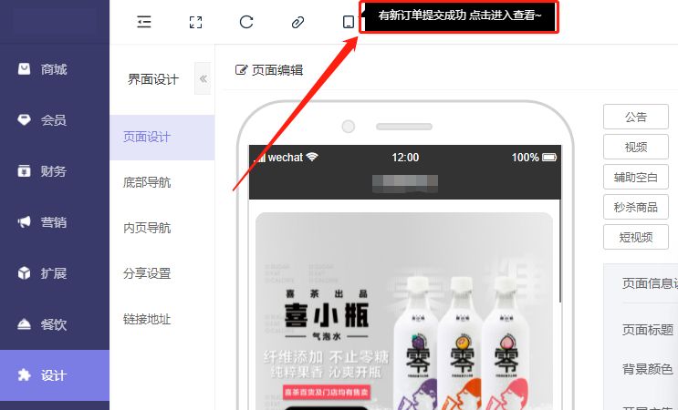 注:电脑开启声音,会有声音提示;需要根据控制台-系统设置-开启客服系统