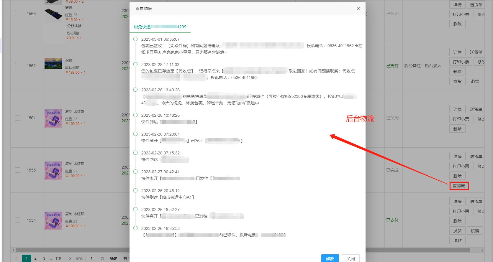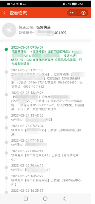注:物流信息需要配置,配置步骤请看操作手册---配置---平台配置---快递查询AppCode,后台发货填写物流单号,配置好快递查询appcode,管理员在后台发货的时候填写物流公司和单号,后台和用户就可以看到物流信息了