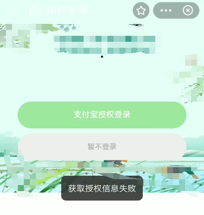 支付宝小程序授权登录提示“获取授权信息失败”、“授权中”