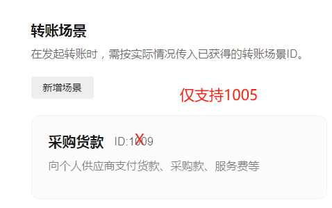 注意:商家转账场景目前仅支持【1005-佣金报酬】