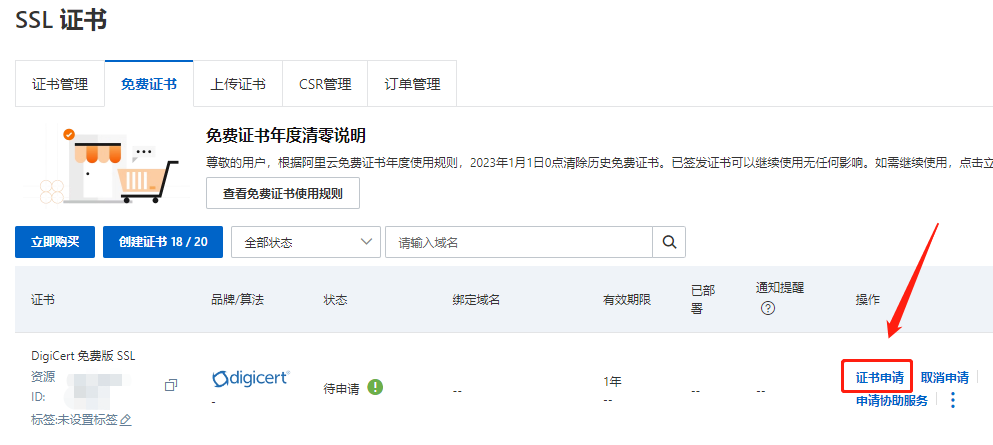 注:您可以在证书列表中查看证书的状态。证书签发后,证书状态将变更为已签发。