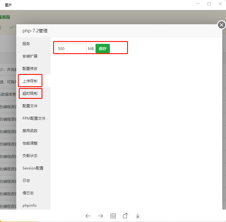 2. 图片太大(宝塔设置上传限制和超时时间限制)