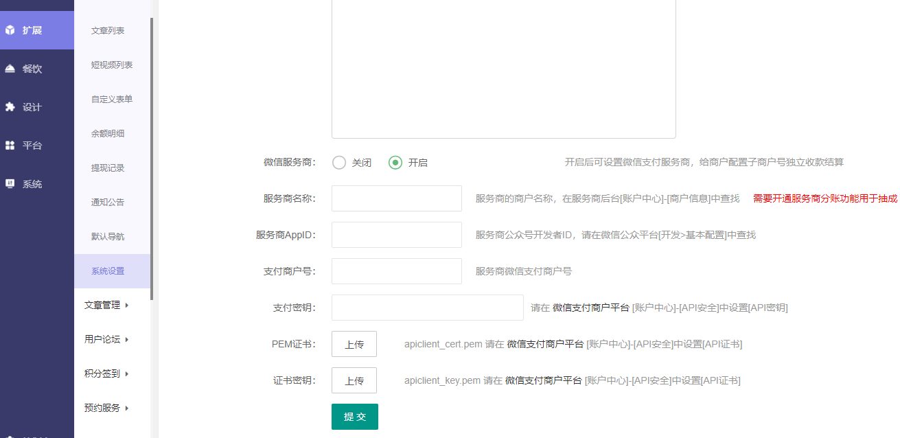 5.扩展-多商户-系统设置-微信服务商